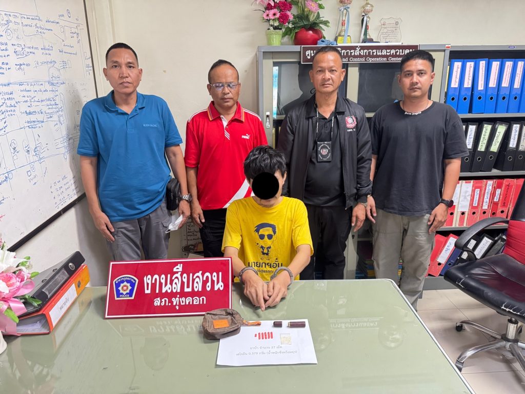 วันนี้ (11 มี.ค. 2568) เวลา 15.00 น. เจ้าหน้าที่ตำรวจ สภ.ทุ่งคอก ภายใต้การอำนวยการของว่าที่ พ.ต.อ.ญาณาธร สนิทปัญญาวุโธ ผกก. สภ.ทุ่งคอก ได้สั่งการให้ พ.ต.ท.บุญธรรม ขาวปลั่ง รอง ผกก.สส. สภ.ทุ่งคอก, พ.ต.ท.มานพ จันทร์ศร สว.สส. สภ.ทุ่งคอก และชุดสืบสวน สภ.ทุ่งคอก ร่วมกันจับกุมตัว นายกร (นามสมมุติ) ซึ่งมีภูมิลำเนาอยู่ที่บ้านเลขที่ ต.บ่อสุพรรณ อ.สองพี่น้อง จ.สุพรรณบุรี