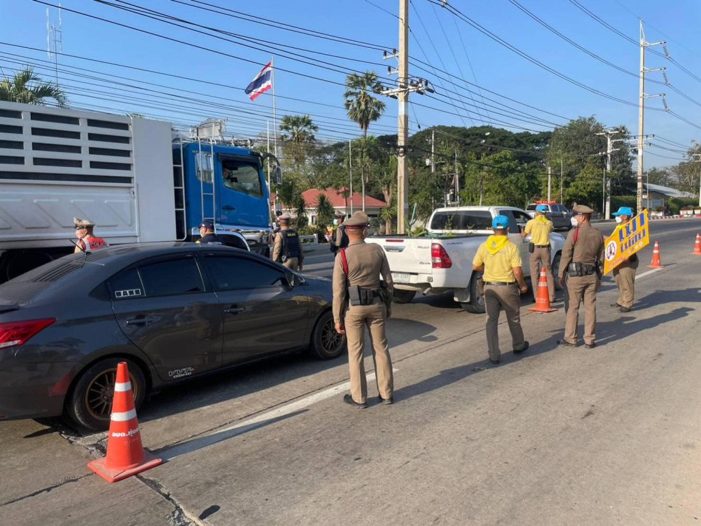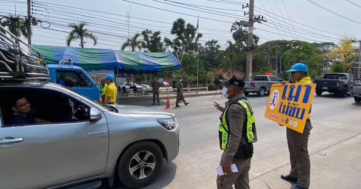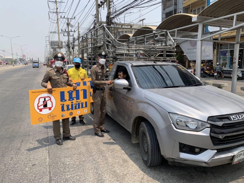 ประชาสัมพันธ์ขับขี่ปลอดภัย รณรงค์ เมาไม่ขับ สวมหมวกนิรภัย 100% ในช่วงเทศกาลสงกรานต์ 2567 ณ บริเวณจุดบริการด้านหน้า สภ.ทุ่งคอก ( ถนน 321 )