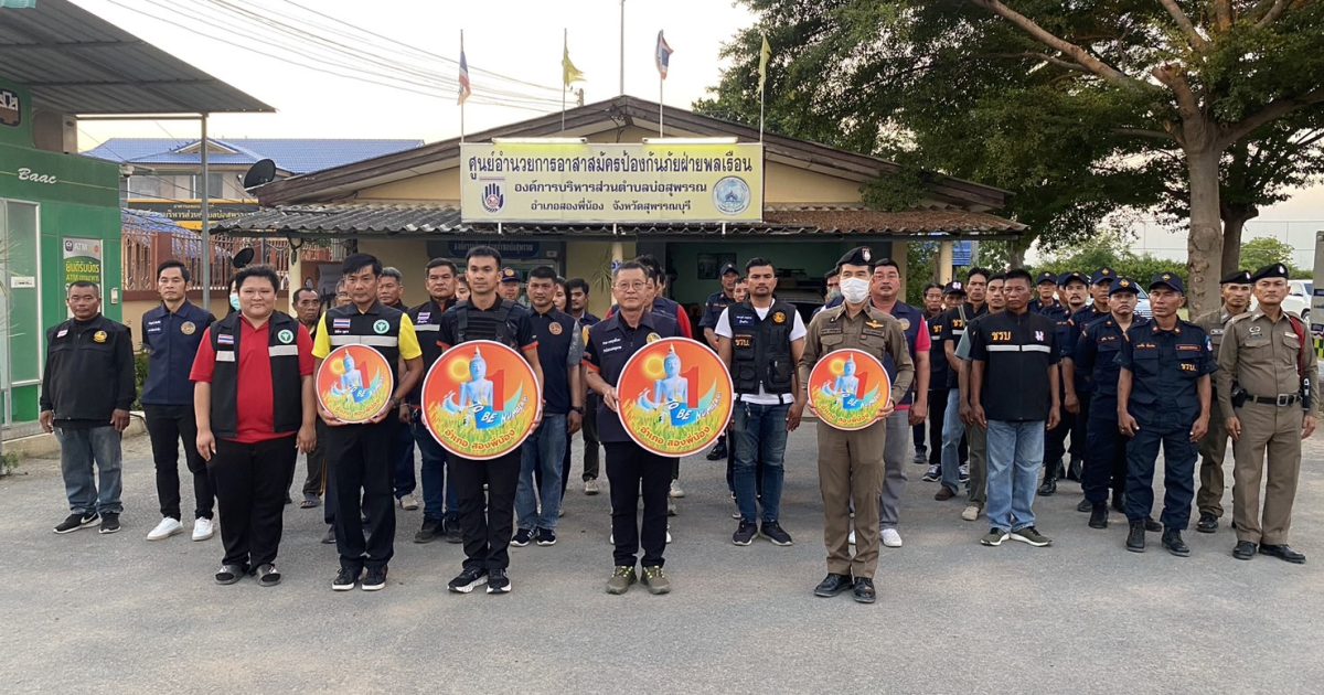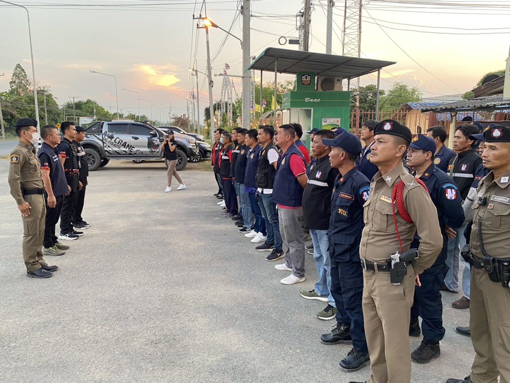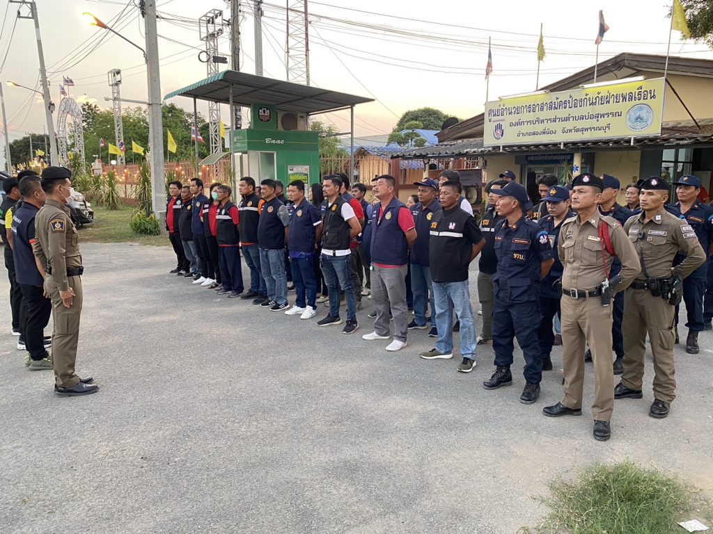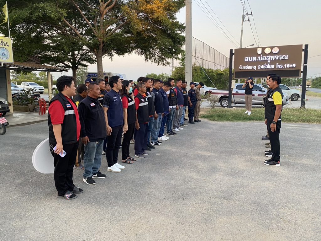 ผู้กำกับการสถานีตำรวจภูธรทุ่งคอกร่วมปล่อยแถวบูรณาการร่วมป้องปรามการโจรกรรม ทรัพย์สิน ณ องค์การบริหารส่วนตำบลบ่อสุพรรณ