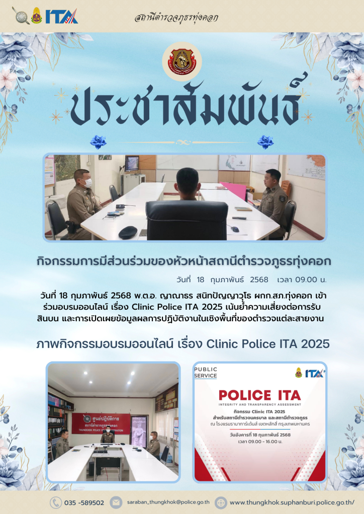 พ.ต.อ. ญาณาธร สนิทปัญญาวุโธ เข้าร่วมอบรมออนไลน์ Clinic Police ITA 2025 ย้ำป้องกันการรับสินบนและการเปิดเผยข้อมูลผลปฏิบัติงาน