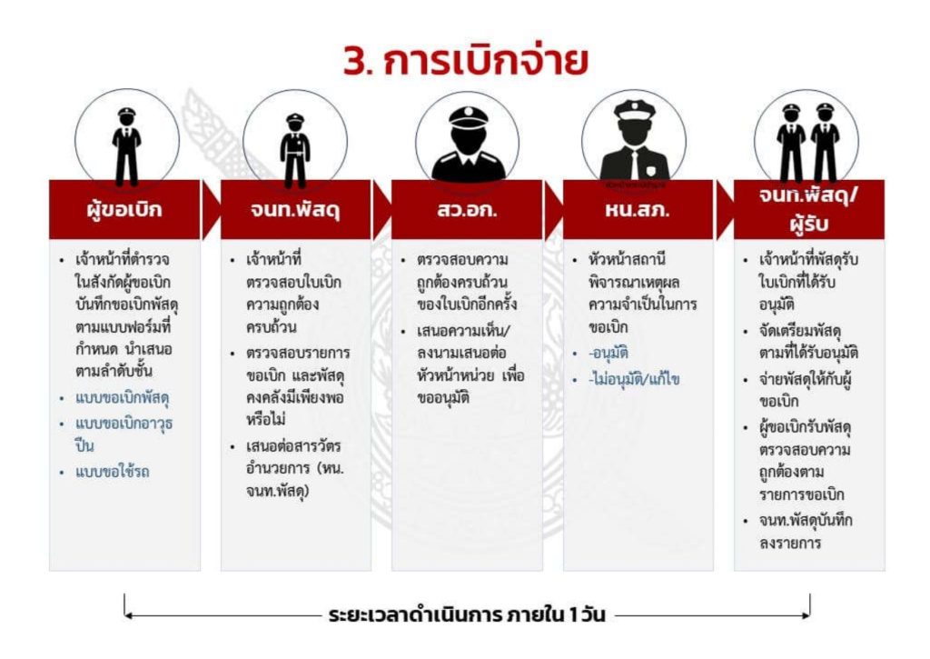 ตรวจสอบและตรวจนับอาวุธยุทธภัณฑ์ของสถานีตำรวจเพื่อให้มีความพร้อมต่อการใช้งานในภารกิจประจำวัน