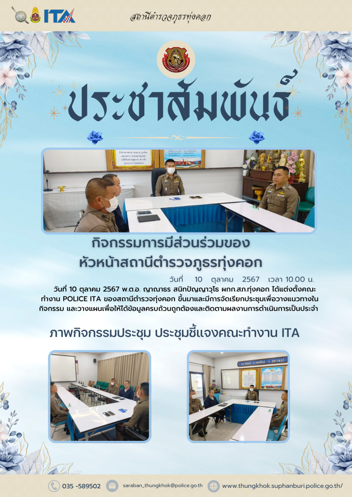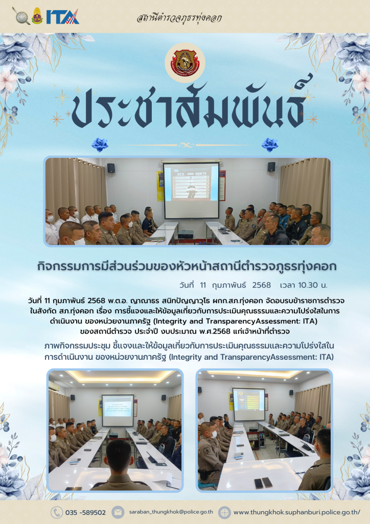 ผู้กำกับการสถานีตำรวจภูธรทุ่งคอกประชาสัมพันธ์การประเมินให้กับผู้มีส่วนได้ ส่วนเสียภายนอก ประจำปีงบประมาณ 2568 ( External Integrity & Transparency Assessment : EIT)